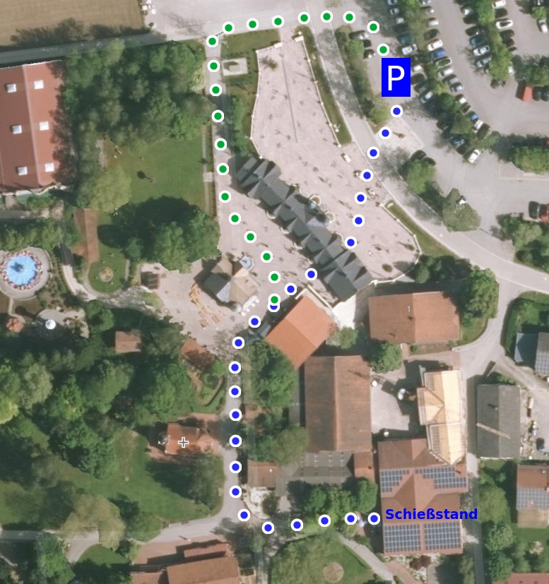 Bitte entlang der eingezeichneten Route zum Schießstand